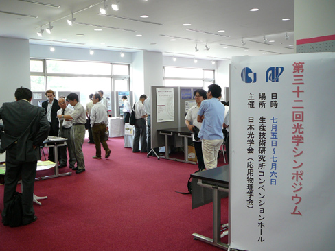 第32回光学シンポジウムは2007年7月5日,6日の2日間に渡り,東京大学生産技術研究所An棟コンベンションホールに於いて開催されました.本シンポジウムは,光学関係の研究者,技術者が集う日本光学会主催の会合としては,Optics & Photonics Japan (旧Optics Japan)に次いで規模の大きな講演会となっております.基礎的な講演が多いOptics & Photonics Japan に対し,本シンポジウムは実用的な講演が多い事から,企業の方に多くのご参加を頂くという特長を持っております.